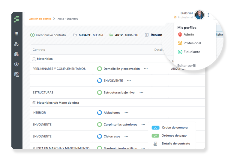 Gestioná contratos separados, desde la previsión hasta la recepción definitiva,